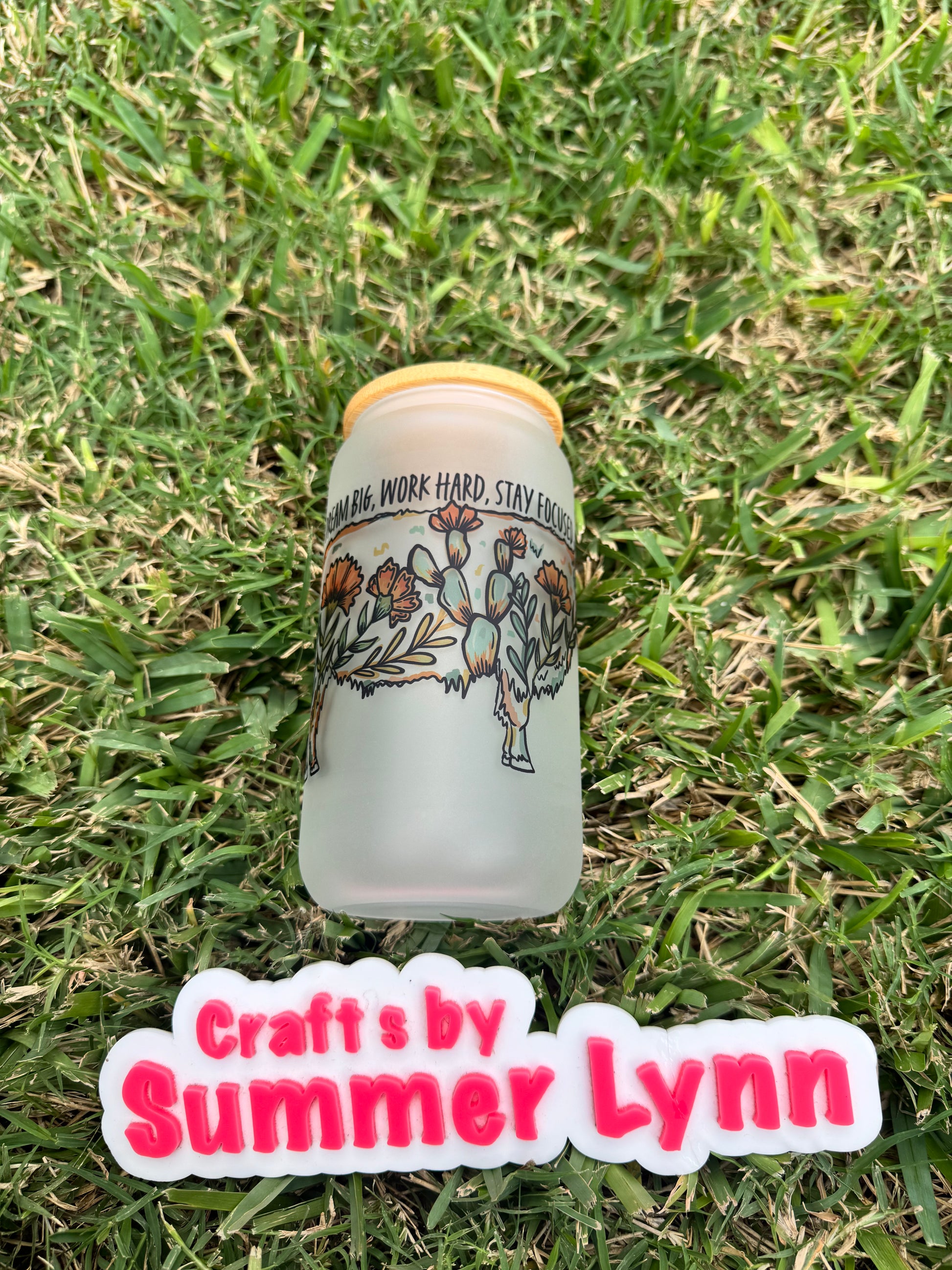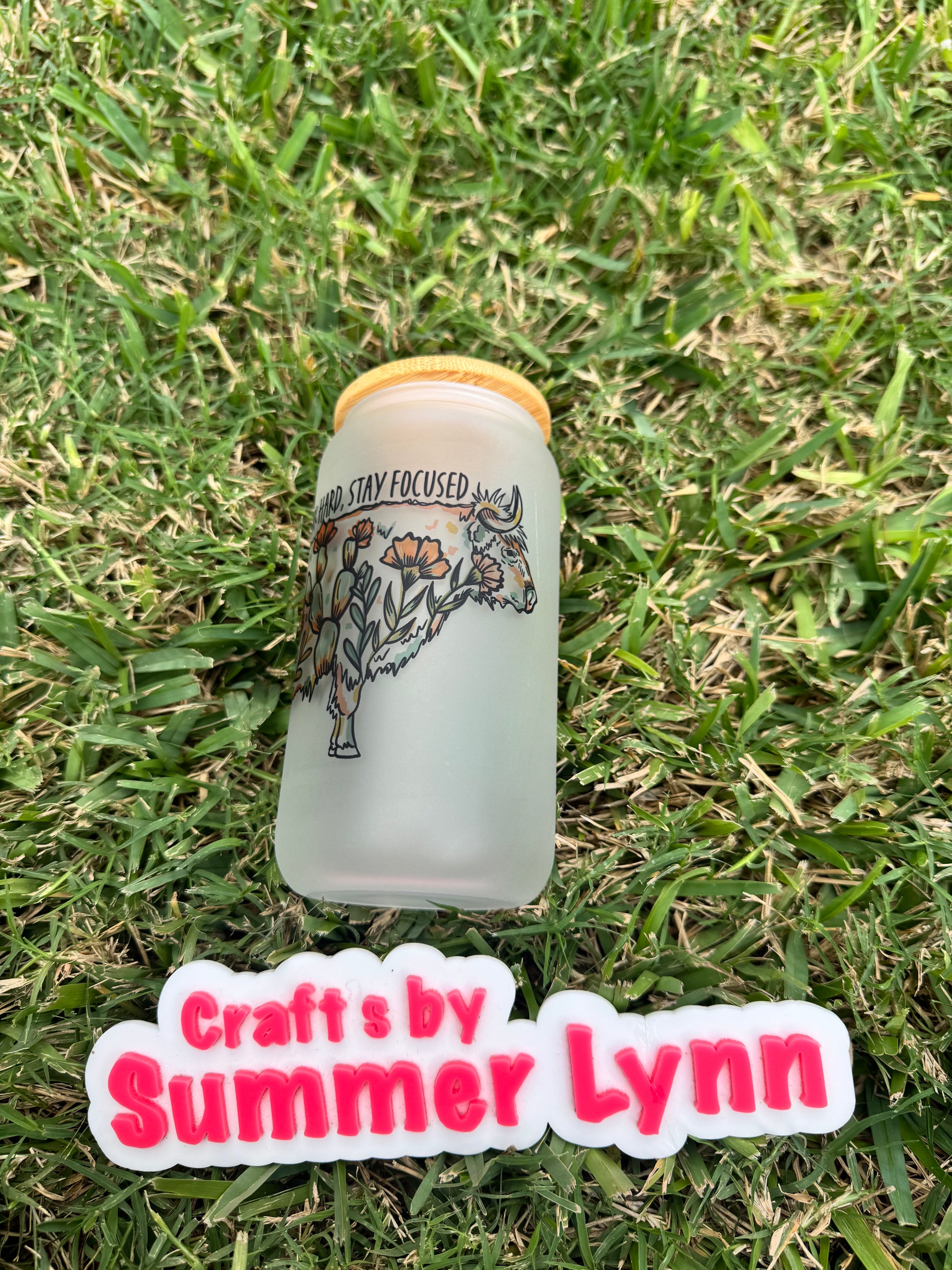 This 16oz frosted glass cup features a unique